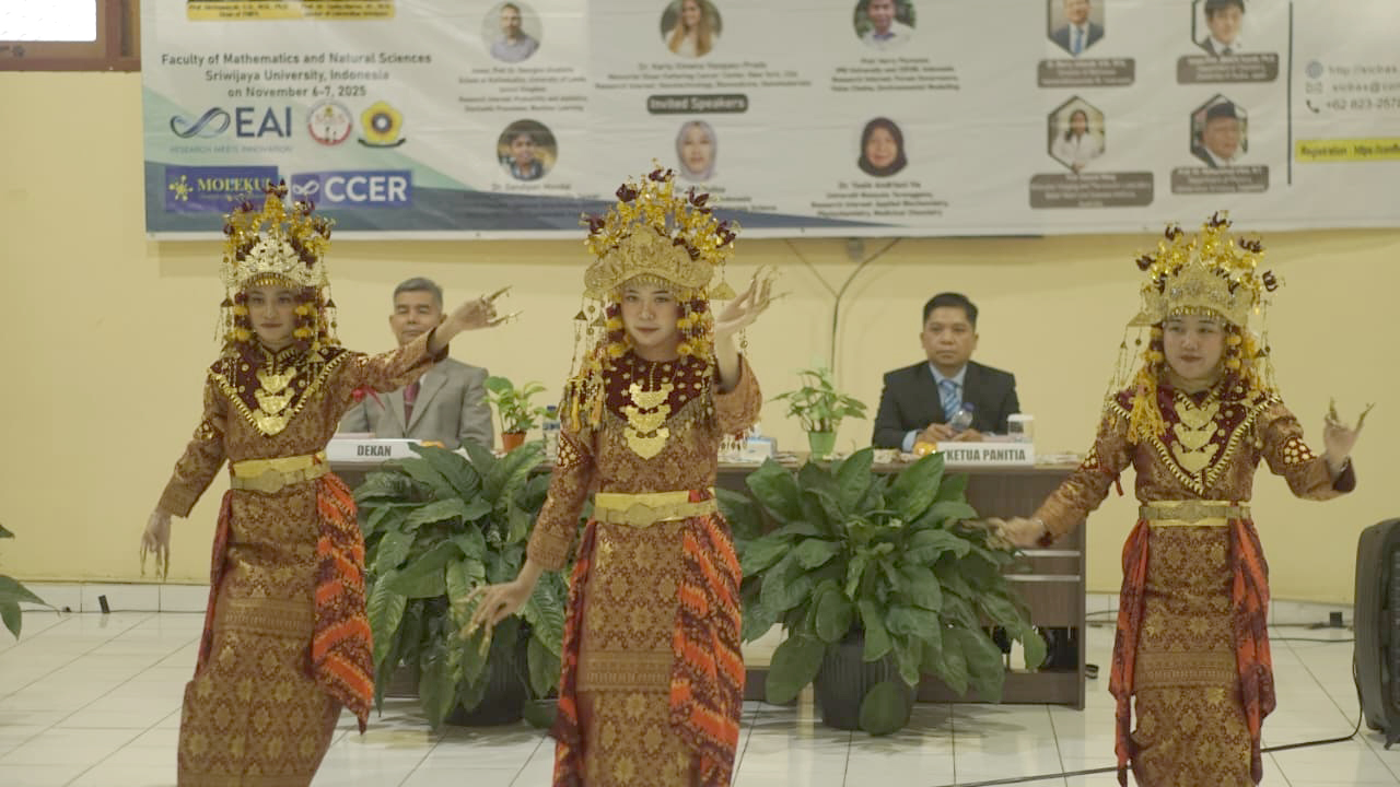 Kegiatan dibuka secara resmi dengan sambutan dari Ketua Panitia, Alfensi Faruk, Ph.D., yang kemudian dilanjutkan oleh Dekan FMIPA Unsri, Prof. Hermansyah, Ph.D. dan Wakil Rektor III Universitas Sriwijaya, Prof. Dr. dr. Radiyati Umi Partan, SpPD-KR, M.Kes, turut memberikan sambutan yang menekankan pentingnya sinergi ilmiah dalam menghadapi tantangan global yang sekaligus membuka acara secara resmi. Sebagai bentuk penghormatan terhadap tamu internasional, acara pembukaan juga dimeriahkan dengan pertunjukan Tari Tanggai khas Palembang.